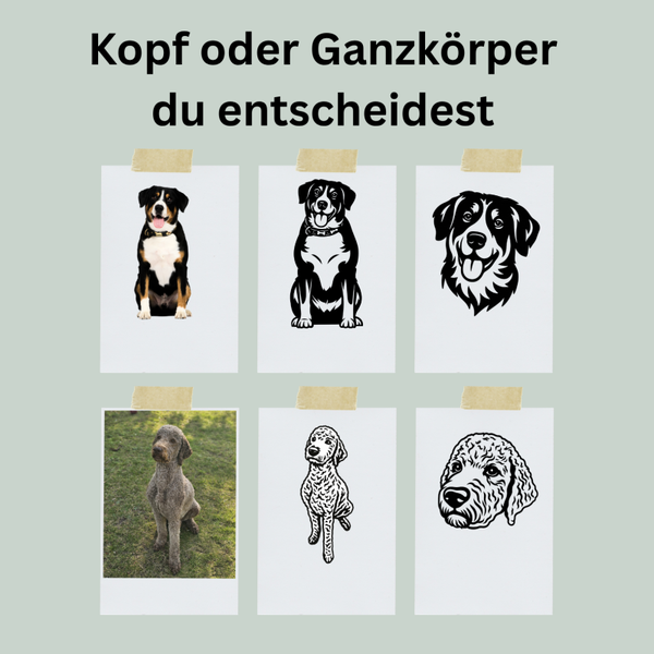 Gib außerdem an, ob dein Design den Kopf oder den gesamten Körper deines Haustiers zeigen soll.