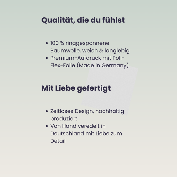 Die Shirts bestehen aus weicher, langlebiger Baumwolle und werden mit hochwertiger Premium-Folie veredelt, die farbintensiv, haltbar und waschbeständig ist.