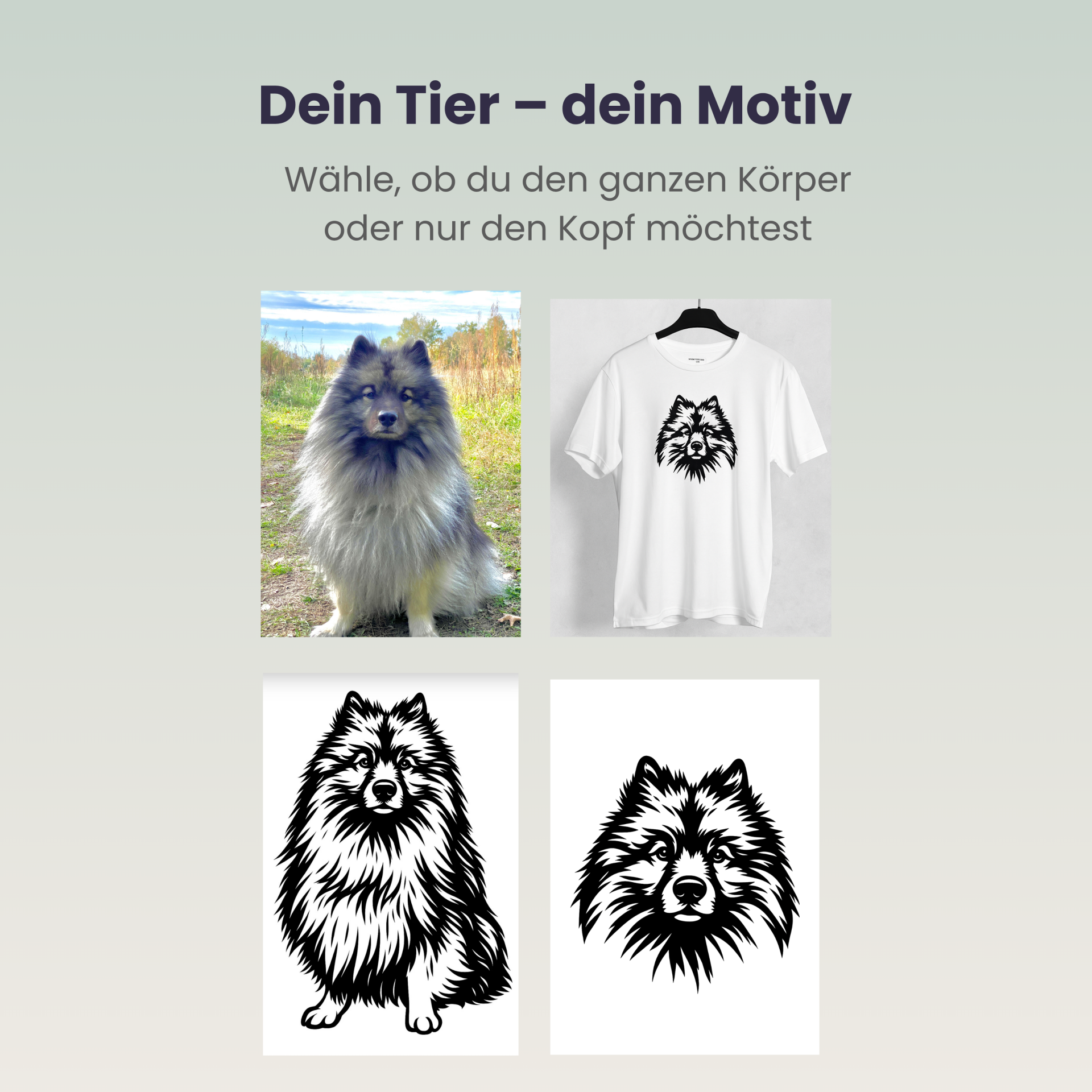 Lade im Bestellprozess ein gut erkennbares Foto deines Haustiers (JPG oder PNG) hoch.
