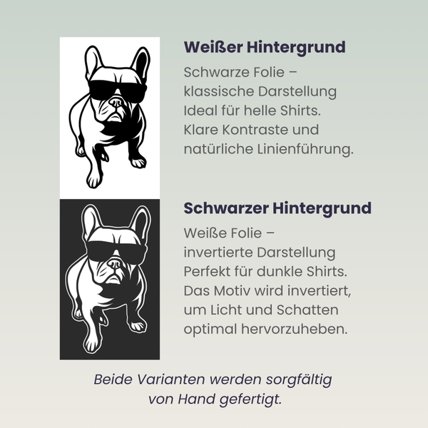 Weiße Folie: invertiert, damit Licht und Schatten natürlich wirken und dein Tier auch auf dunklen Stoffen klar erkennbar bleibt.